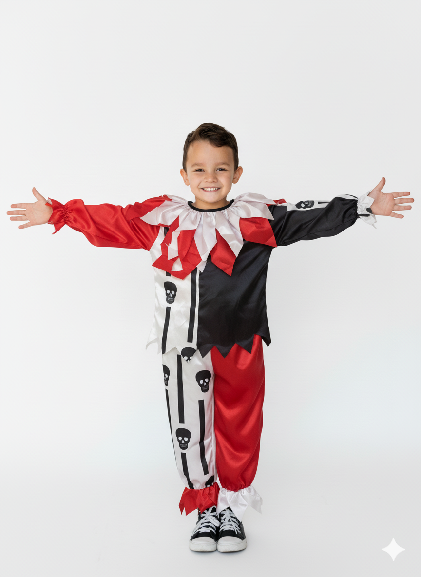 Este disfraz de Arlequín para niño combina colores vibrantes y un diseño clásico para que los más pequeños luzcan alegres y llenos de vida en cualquier fiesta o carnaval. Cómodo y fácil de llevar, permite que los niños se muevan libremente mientras disfrutan de sus aventuras disfrazados. Ideal para estimular la imaginación con un toque divertido y tradicional.