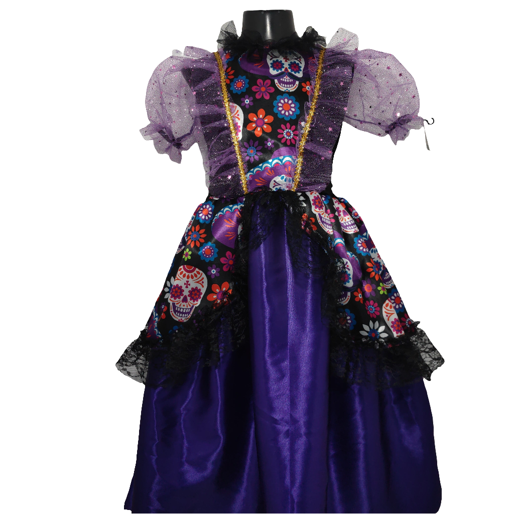 ¡El disfraz perfecto para tu siguiente fiesta! Esta catrina morada es hermosa y exquisita, con la calidad que esperas. Dale un toque moderno y elegante a tu look con esta catrina tradicional. ¡No te quedes fuera de la diversión!
