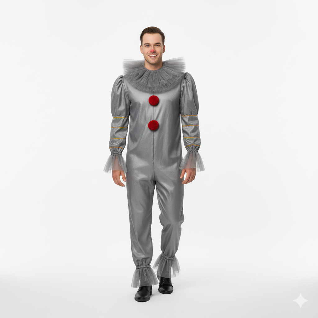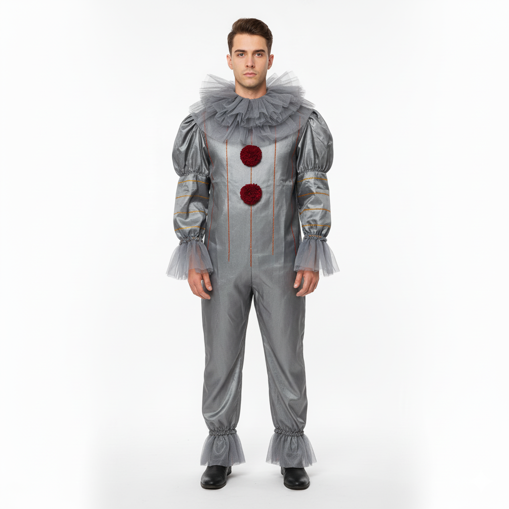 Este disfraz de payaso asesino de lujo combina diversión y un toque aterrador para destacar en cualquier fiesta o evento de Halloween. Con detalles cuidadosos y acabados de calidad, te permite transformar tu look con estilo y originalidad. Ideal para quienes buscan un disfraz único que cause sensación y sonrisas… o algún que otro susto. ¡Prepárate para ser el centro de atención con este outfit que mezcla misterio y diversión!