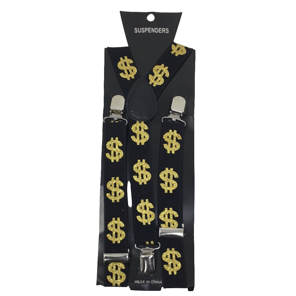 Agrega un toque de elegancia y estilo a tu vestimenta con nuestros tirantes con símbolos de dólar. Mantén tus pantalones en su lugar mientras lucen un diseño único y llamativo. Ideal para cualquier ocasión, estos tirantes son una adición imprescindible a tu guardarropa.